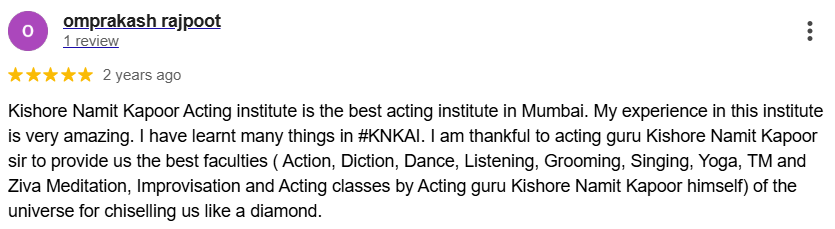 Kishore Namit Kapoor is a well-renowned acting trainer and founder of KNK Acting Institute. He has been in the industry for over 40 years, starting his career as an actor before transitioning to training and mentoring aspiring actors. He is known for his unique method of teaching, which combines traditional acting techniques with practical approach. He has trained many successful actors in Bollywood and Television industry. Mr. Kapoor has a reputation for being a strict but fair teacher, and his students have gone on to achieve great success in the industry. He is a well-respected figure in the Indian acting community and is highly sought after as a teacher and mentor.